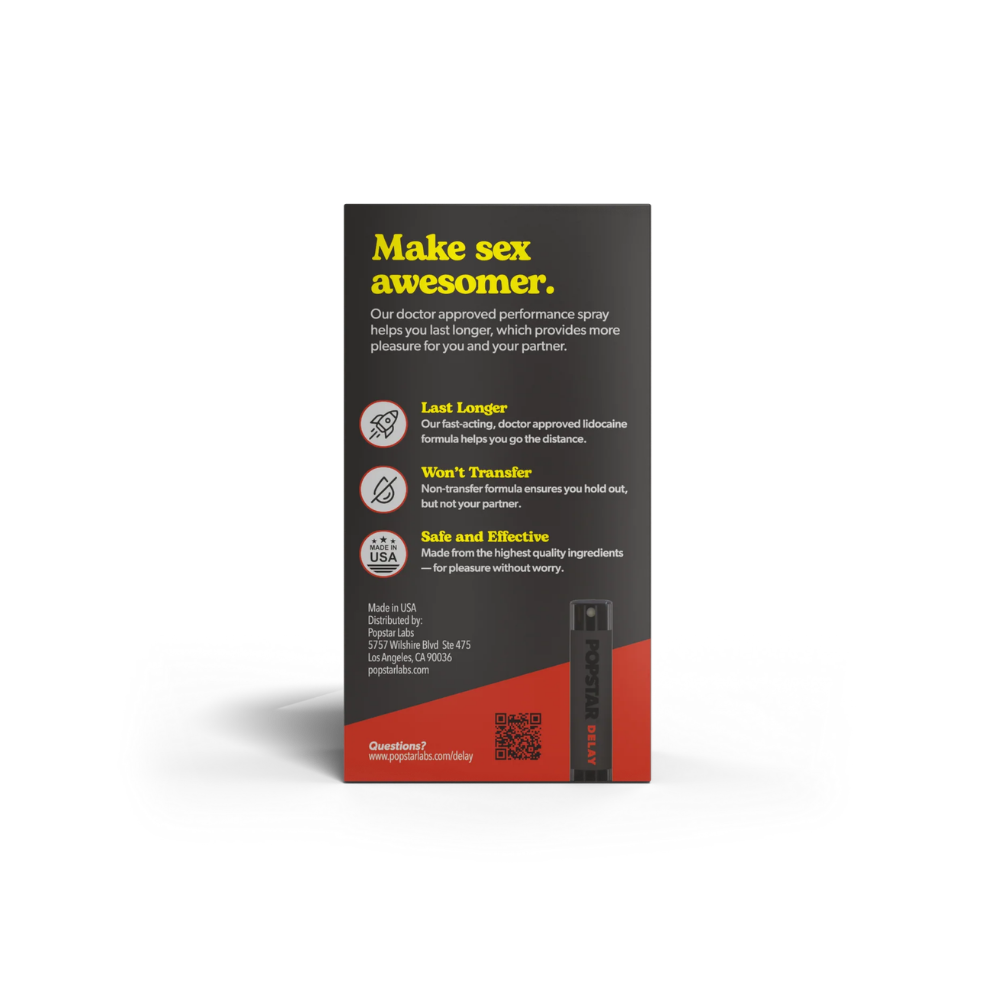 Popstar Delay Spray is an easy-to-use, lidocaine-based formula designed to help you stay in control and extend performance when it matters most. Using a precise metered spray for accurate dosing, a quick application absorbs fast and gets to work quietly behind the scenes — no smell, no taste, no awkward distractions.... and it won't transfer onto a partner!
